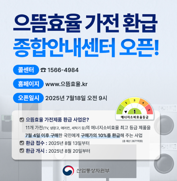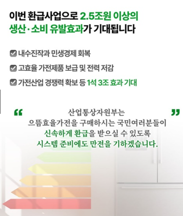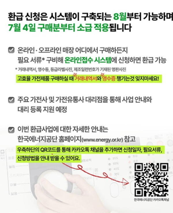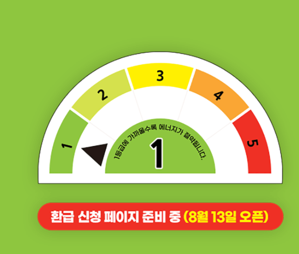 지금 당장 본인 명의 1등급 가전제품을 구매하셨다면, 8월 13일에 환급 신청을 꼭 챙기세요!