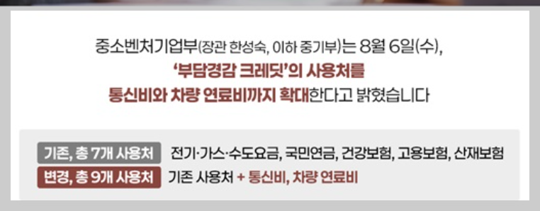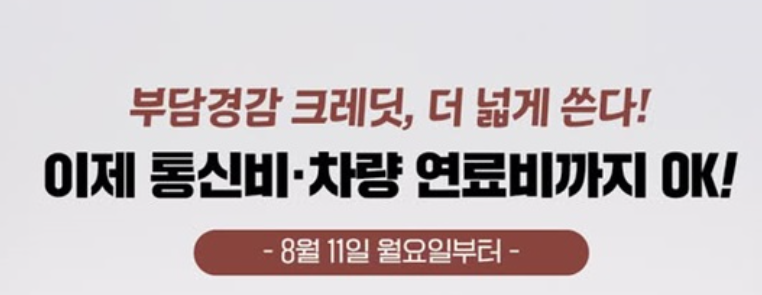 2025년 8월 11일부터는 기존 7개 항목에 더해 통신비와 차량 연료비까지 크레딧 사용이 가능해집니다.